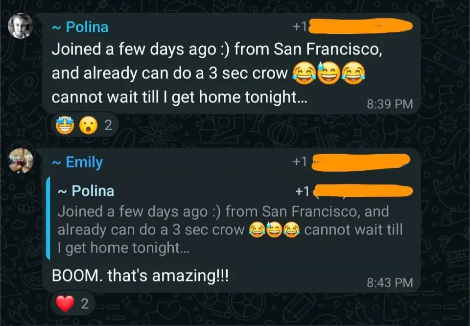 Get access to a private group of motivated yogis sharing wins, asking questions, and cheering each other on.