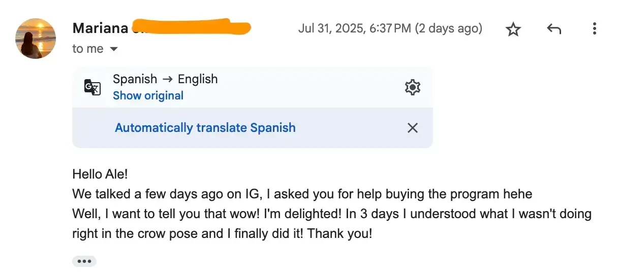 If you don't nail Crow Pose after you put this program into action, email us and we'll send you a full refund, no questions asked.