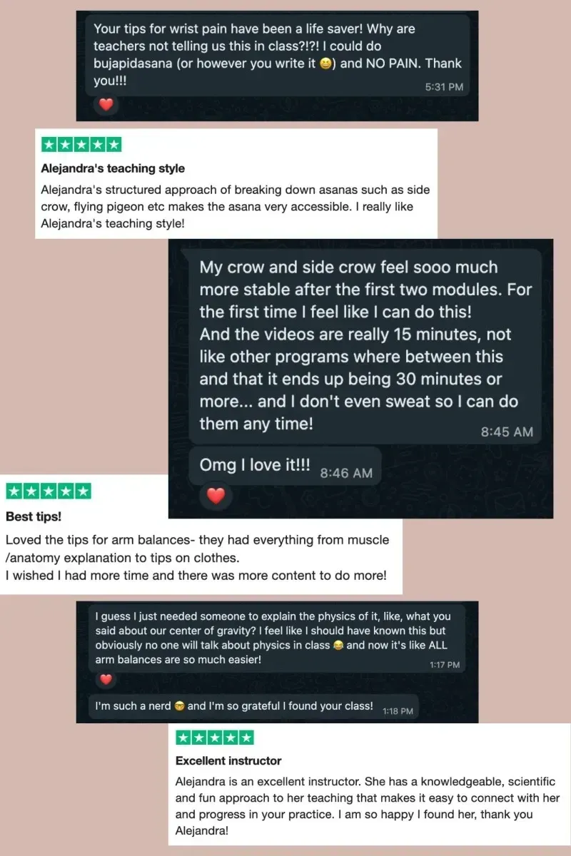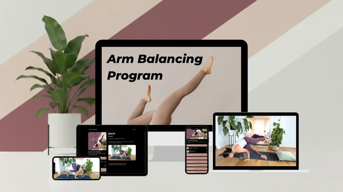 💡 You DO NOT need to be able to do a full Chaturanga (yoga pushup) or have extreme core strength to succeed in this course. Arm balancing is about technique, not brute strength, and I’ll guide you step by step to make it feel easier and more accessible than you ever imagined!