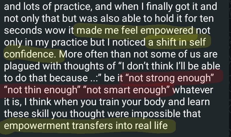 Feel proud and confident walking into class, knowing you can actually arm balance
