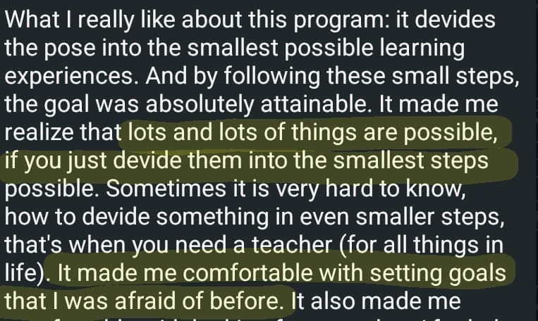 And since then, I’ve helped over 200 students (including many yoga teachers) get their first arm balance without crazy strength training.